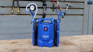 - Három különböző tartozékának, egy erős 1100 W-os motornak és a 8 bar magas üzemi nyomásnak köszönhetően könnyedén felfújja a gumiabroncsokat motorkerékpárokon, kerékpárokon, autókon, terepjáró quadokon, labdákat, matracokat, felfújható csónakokat, SUP-okat stb.
