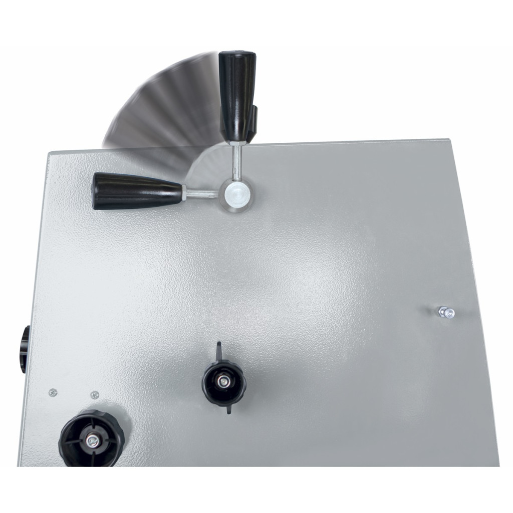 - Masszív, -8°- 45°- ig dönthető öntvénymunkaasztal rendelkezik.