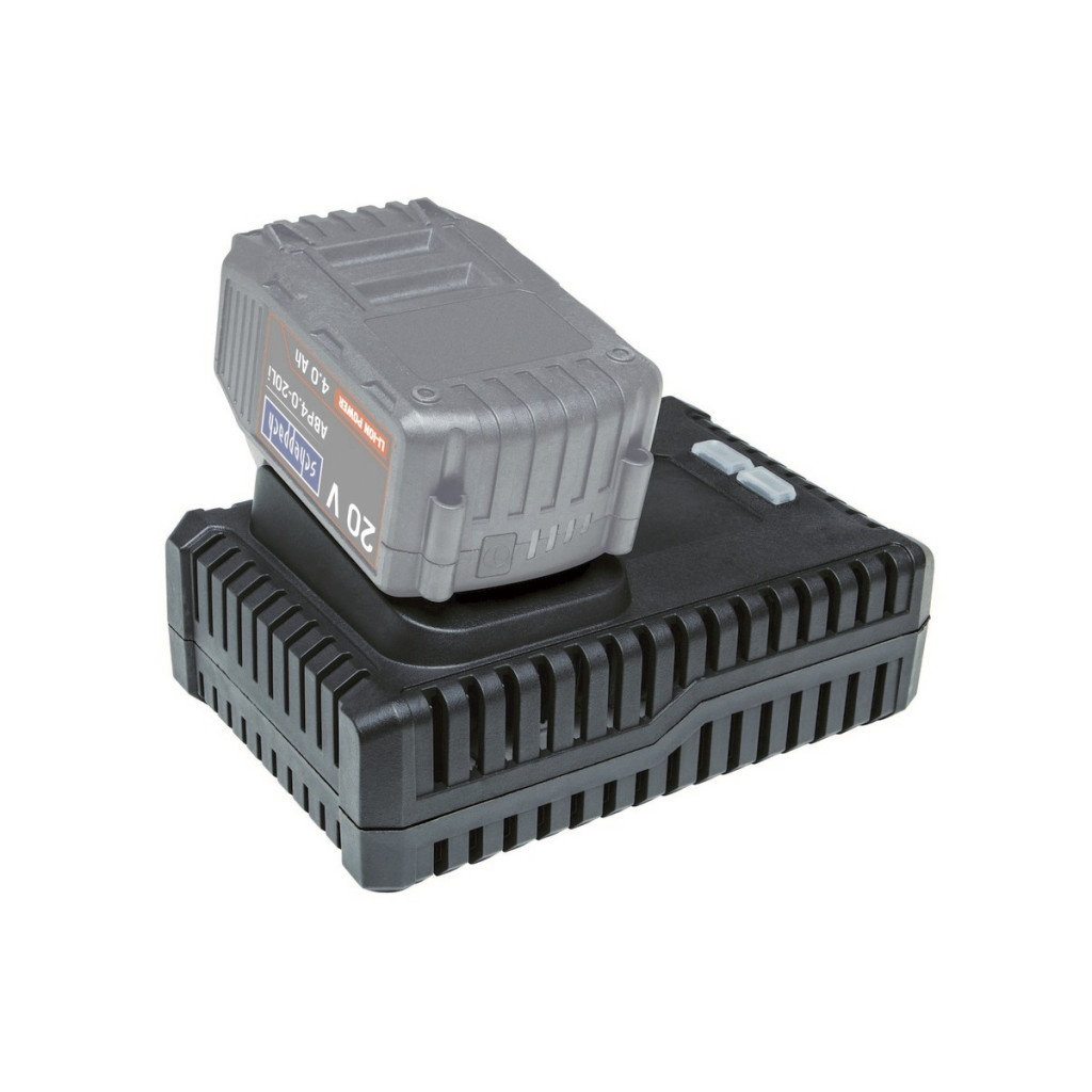 A Scheppach BFC4-20Li egy kompakt gyorstöltő, amely alkalmas minden Scheppach 20 V-os Li-Ion akkumulátor (kivéve IXES 20V akkuk) töltésére.