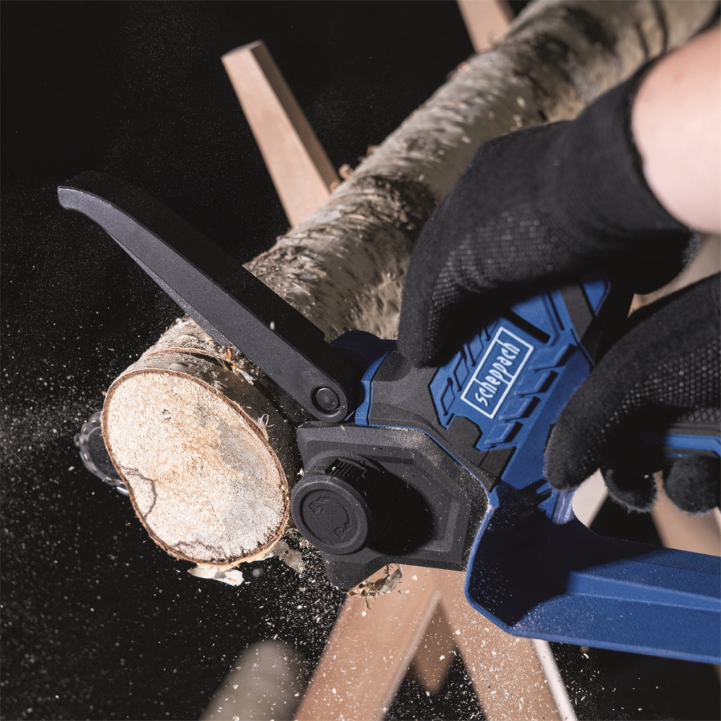 - Ez a kompakt és könnyű Scheppach BC-PS100-X-SET akkus ágvágó láncfűrész ideális eszköz a fák, cserjék egyszerű ágvágásához és a kerti hulladékok kisebb darabokra történő hatékony feldolgozásához.