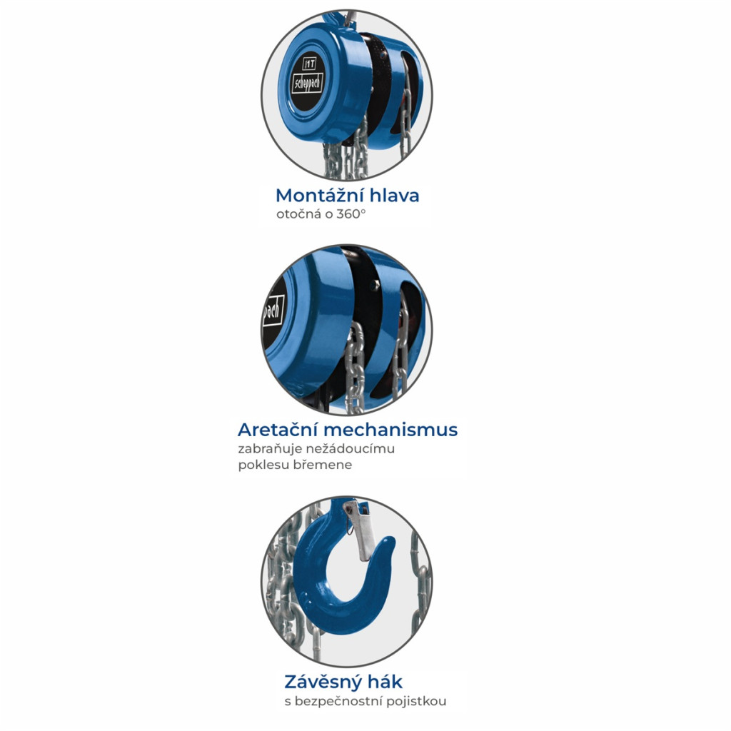 kézi láncos emelő-csörlő A Scheppach CB 01 kézi működtetésű, nagy teherbírású, láncos csörlő alkalmas akár egy tonna anyag emelésére és mozgatására is.
