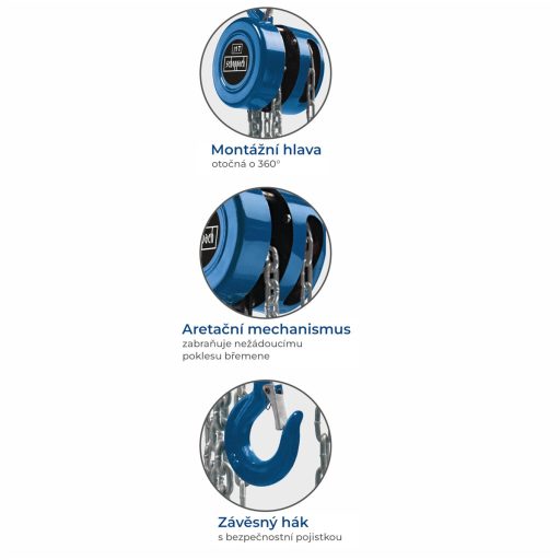 kézi láncos emelő-csörlő A Scheppach CB 02 kézi működtetésű, nagy teherbírású, láncos csörlő alkalmas akár két tonna anyag emelésére és mozgatására is.