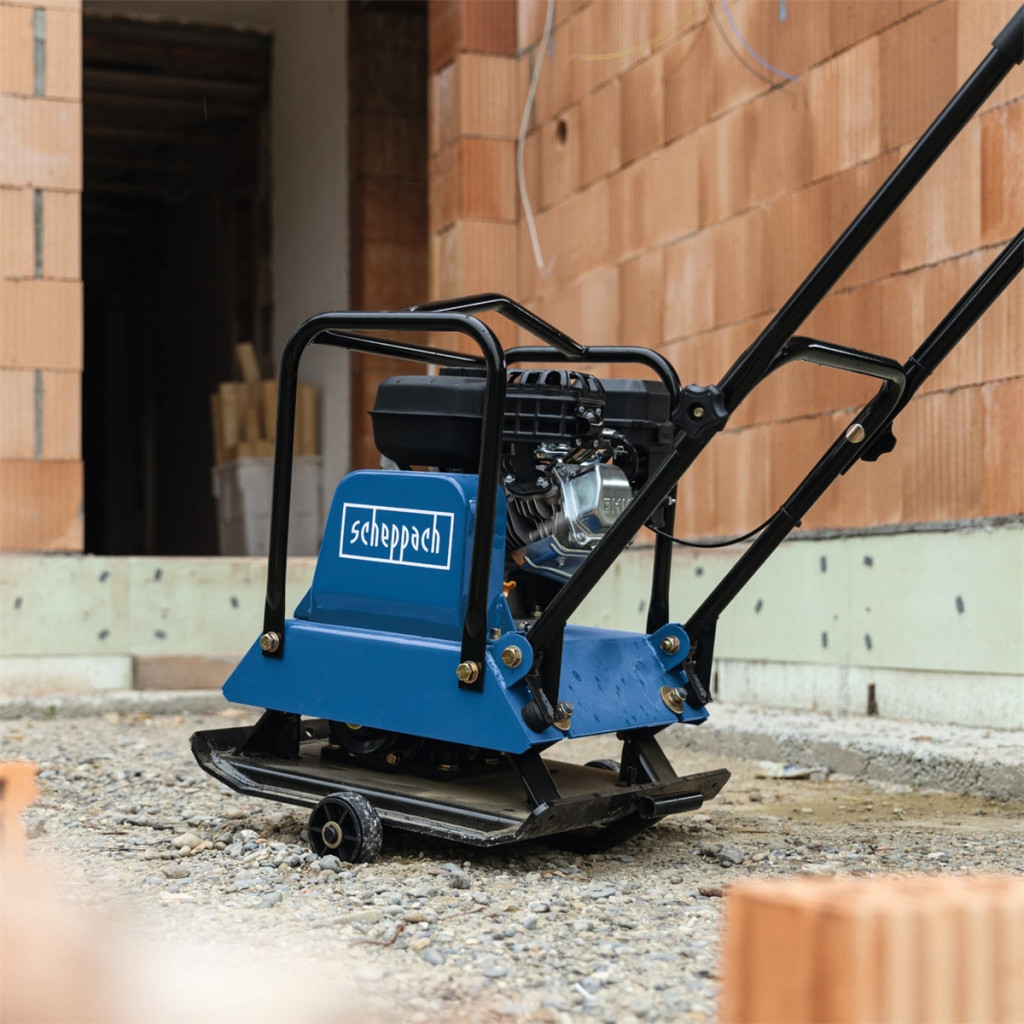 lapvibrátor 88 kg A Scheppach HP 1800 S univerzális lapvibrátor a 88 kg-os tömegével alkalmas a talaj tömörítésére a kertekben, az aszfaltozáshoz, az utak javításához, a térburkolatok tömörítésére, illetve egyéb terepmunkákhoz.