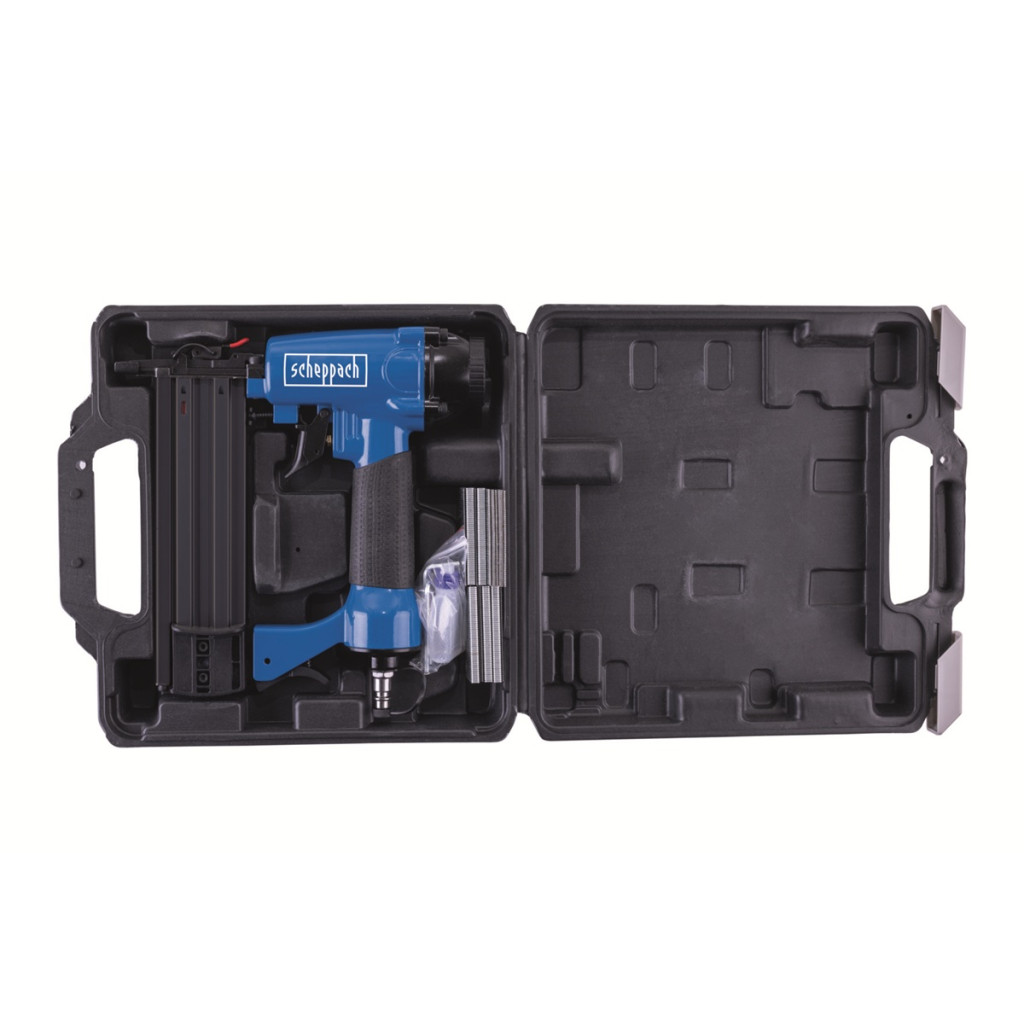 - rögzítéséhez Használható szeg típus 18 Ga (bognár szeg): 15-50 mm Egyszerű mélységbeállítás, optikai kémlelés Tárfeltöltés szükségessége: igen Kapocs hossz: 16-40 mm Kapocs szélesség: 5,7 mm Üzemi nyomás: 8,3 bar Levegőigény lövésenként: 1,5 l Forgatható levegő elvezetés: 360 °-kal forgatható Csúszásgátló markolat: igen Tartozékok: 1000 db szeg, 1000 db tűzőkapocs, 2 x imbuszkulcs, zsírzógomb, olaj, védőszemüveg: igen